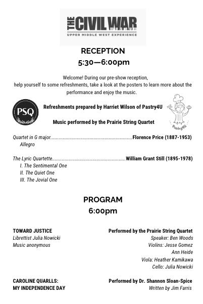 We invite you to attend a special artistic commemoration marking the 156th Anniversary of the Equal Protection Clause and the ratification of the 14th Amendment featuring captivating performances by The Prairie String Quartet and Dr. Shannon Sloan-Spice.